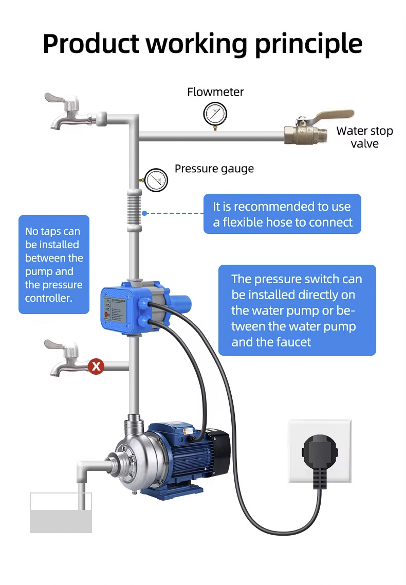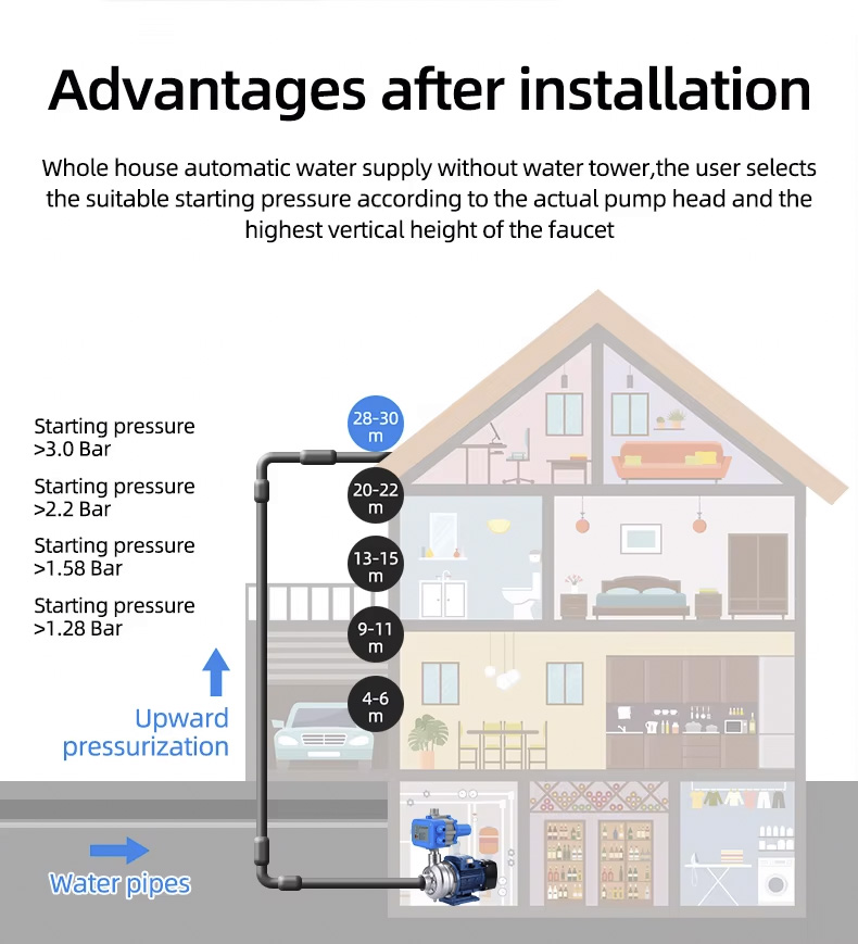 Автоматты сорғы реттегіші Су сорғысының электронды қысым реттегіші автоматты су сорғысының күрделі қондырғыларын алмастыра алады. Оның тұрақты өнімділігі, төмен техникалық қызмет көрсету және ұзақ қызмет ету ерекшеліктері бар.