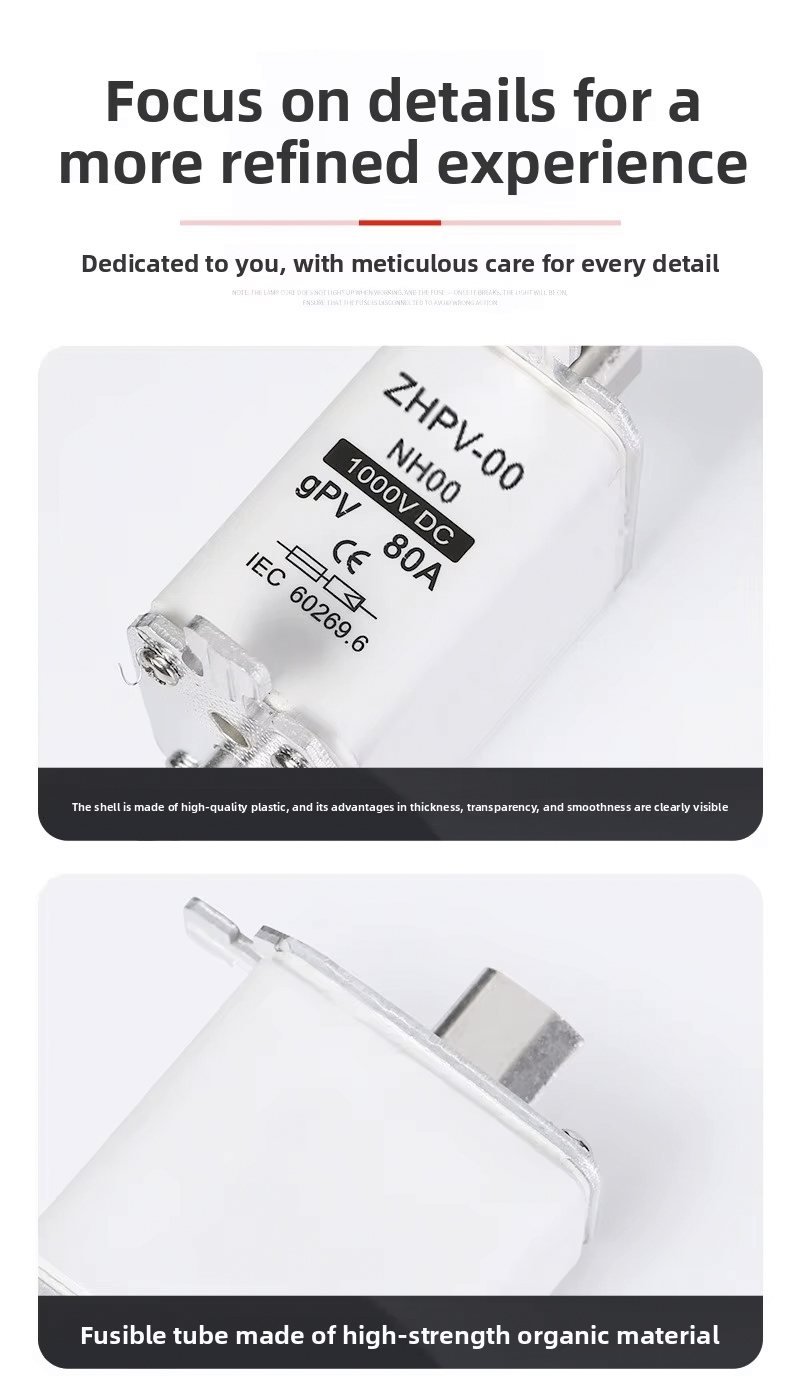 NH00-1000V IEC төмен вольтты фотовольтаикалық пышақ сақтандырғыш пластик 80A 6ka үзу сыйымдылығы фотоэлектрлік жүйелерде және басқа төмен вольтты қолданбаларда тізбекті тиімді және сенімді қорғауға арналған. Бұл жоғары сапалы сақтандырғыш 1000 В-қа дейін жұмыс істейді, 6ка берік ажырату қабілетімен шамадан тыс жүктеме немесе қысқа тұйықталу жағдайында қауіпсіз ажыратуды қамтамасыз етеді. Оның 80А номиналды тогы оны әртүрлі PV қондырғылары мен өнеркәсіптік басқару панельдері үшін қолайлы етеді.