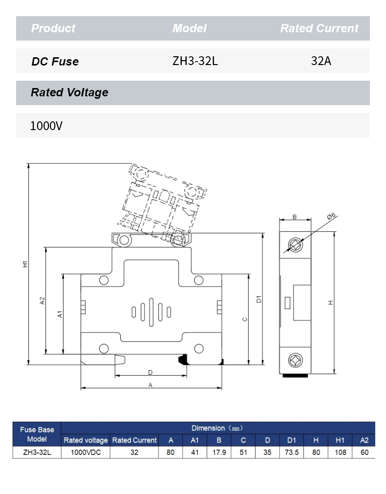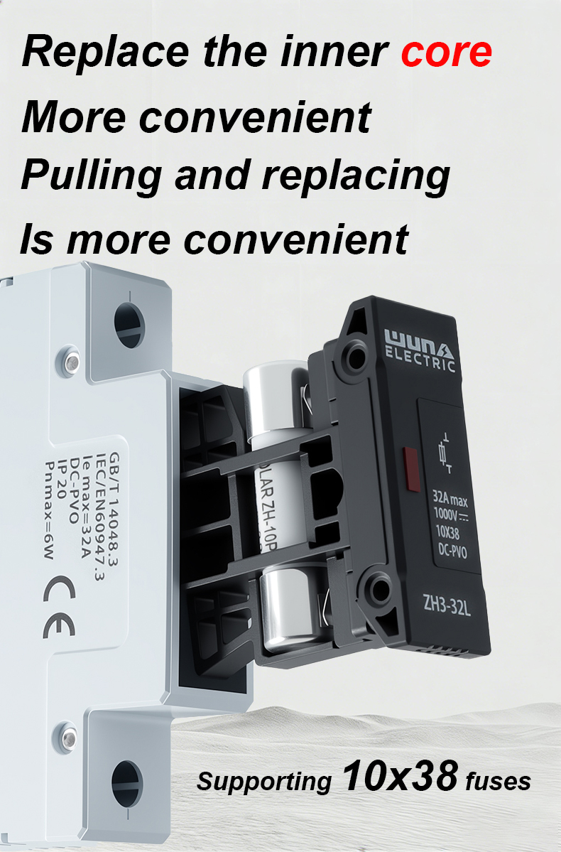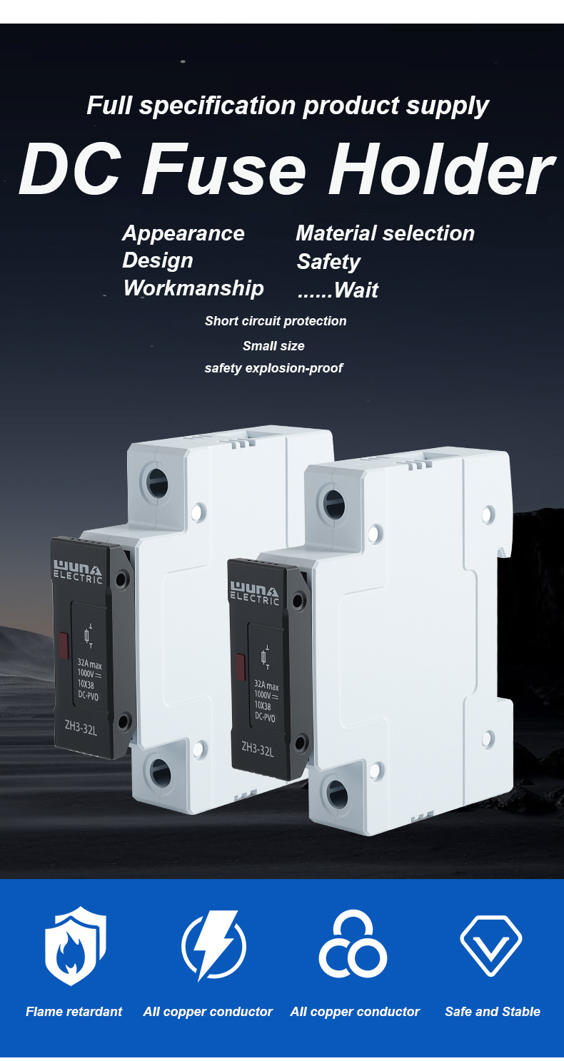 ZH32L DC 1000V сақтандырғыш ұстағышы фотоэлектрлік және басқа тұрақты ток қолданбаларында электр тізбектерін сенімді қорғауды қамтамасыз етуге арналған жоғары өнімді құрамдас болып табылады. Берік конструкциясы мен тамаша оқшаулауымен ZH32L DC 1000V сақтандырғыш ұстағышы тұрақты ток 1000В дейін есептелген сақтандырғыштарды қауіпсіз орналастыру үшін жарамды, бұл шамадан тыс ток пен қысқа тұйықталудың зақымдалуын тиімді болдырмайды.